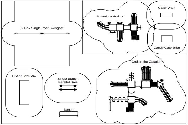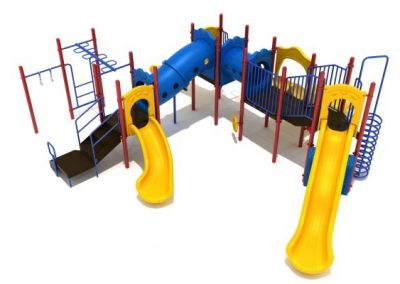 - Play system with 5 slides, tunnels, monkey bars, pull-up bars, climbers (Ages 5 -12)